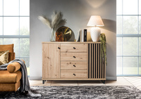 Nowoczesna komoda z lamelami wyposażona w 2 szafki i 4 szuflady kolekcja Camelo