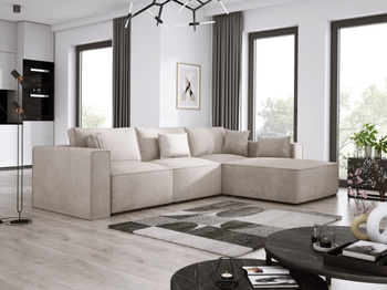 Duży nowoczesny narożnik Bergamo funkcja spania pojemnik pikowane siedzisko