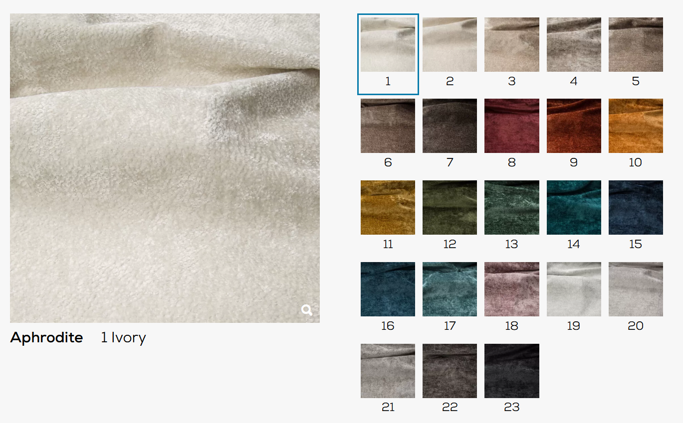 Miękka tkanina o aksamitnym dotyku i zdecydowanie unikalnym wzorze. Idealna, jeśli chcesz dodać nutę glamour do swojego wnętrza. Opracowana w szerokiej gamie kolorystycznej — można tu znaleźć delikatne odcienie, takie jak kremowy, beżowy i szary, które są uzupełnione odważnymi, szlachetnymi kolorami, takimi jak rubinowa czerwień, turkus, opalowa zieleń lub benzynowy niebieski.