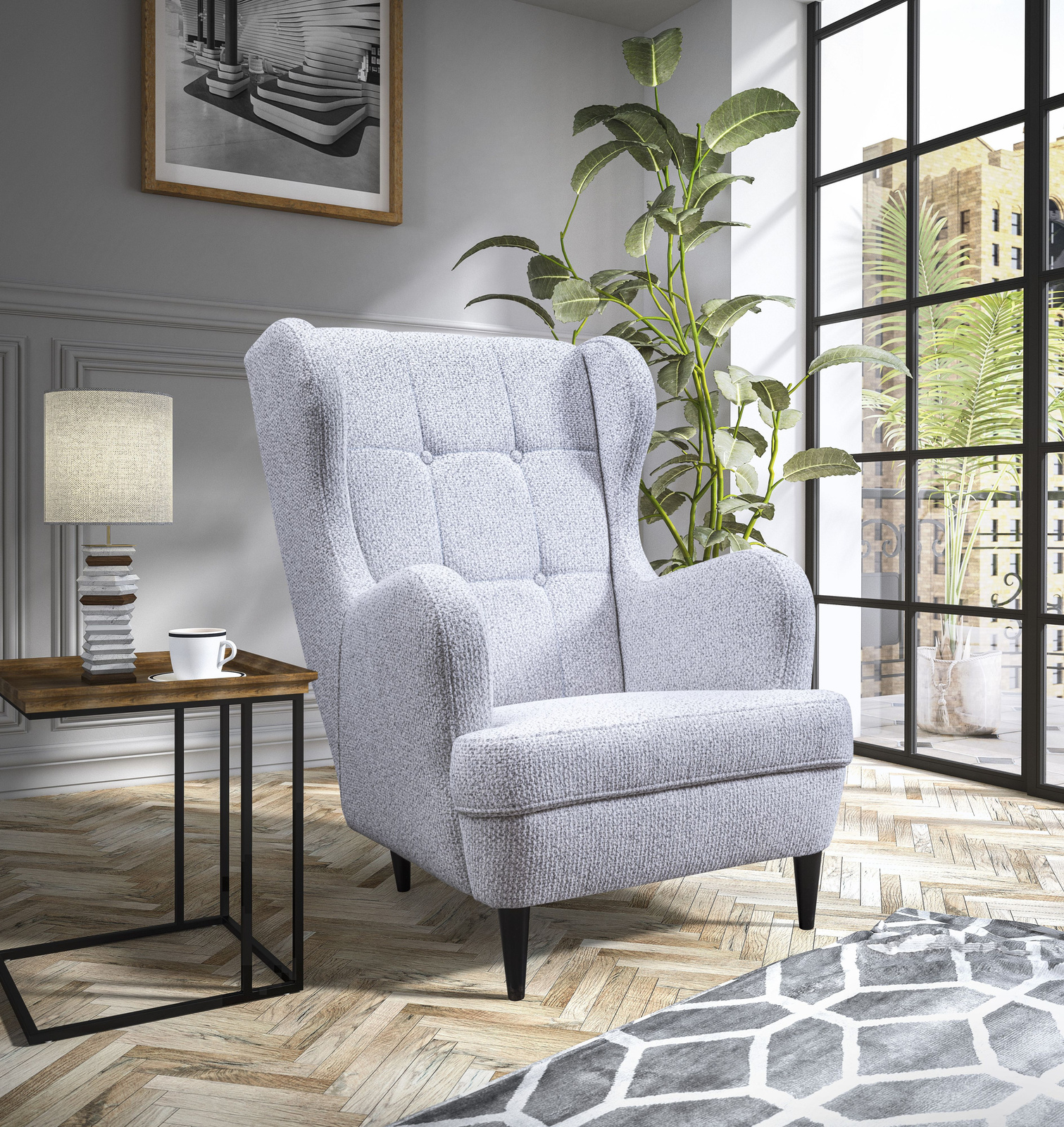Klasyczny fotel uszak Snug to idealne rozwiązanie dla tych, którzy szukają harmonii między klasycznym designem a wyjątkowym komfortem. Wyjątkowe detale, takie jak pikowane oparcie z guzikami tapicerskimi, wysokie podłokietniki oraz smukłe, drewniane nóżki, podkreślają jego ponadczasowy styl.